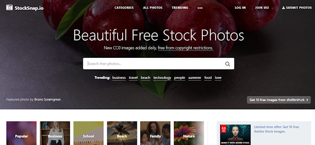 Website penyedia foto gratis selanjutnya adalah Stocksnap.io. Situs ini menyediakan ribuan foto gratis yang dapat sobat download sesuka hati. Bahkan untuk keperluan komersial.
